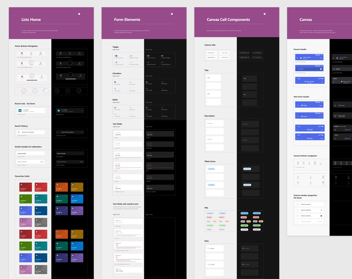 To ensure consistency across mobile platforms, I built a shared design system for Lists on Mobile and Tablet, with 100+ components. It supported faster iteration and alignment with Microsoft’s Fluent design language.