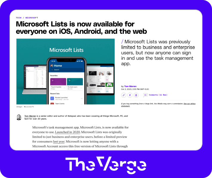 I led the end-to-end design of the Microsoft Lists Android app. Over six months, I shaped everything from foundational flows and micro interactions, to collaborating with marketing on assets like the Play Store imagery. This work spanned end-to-end product thinking and hands-on execution.