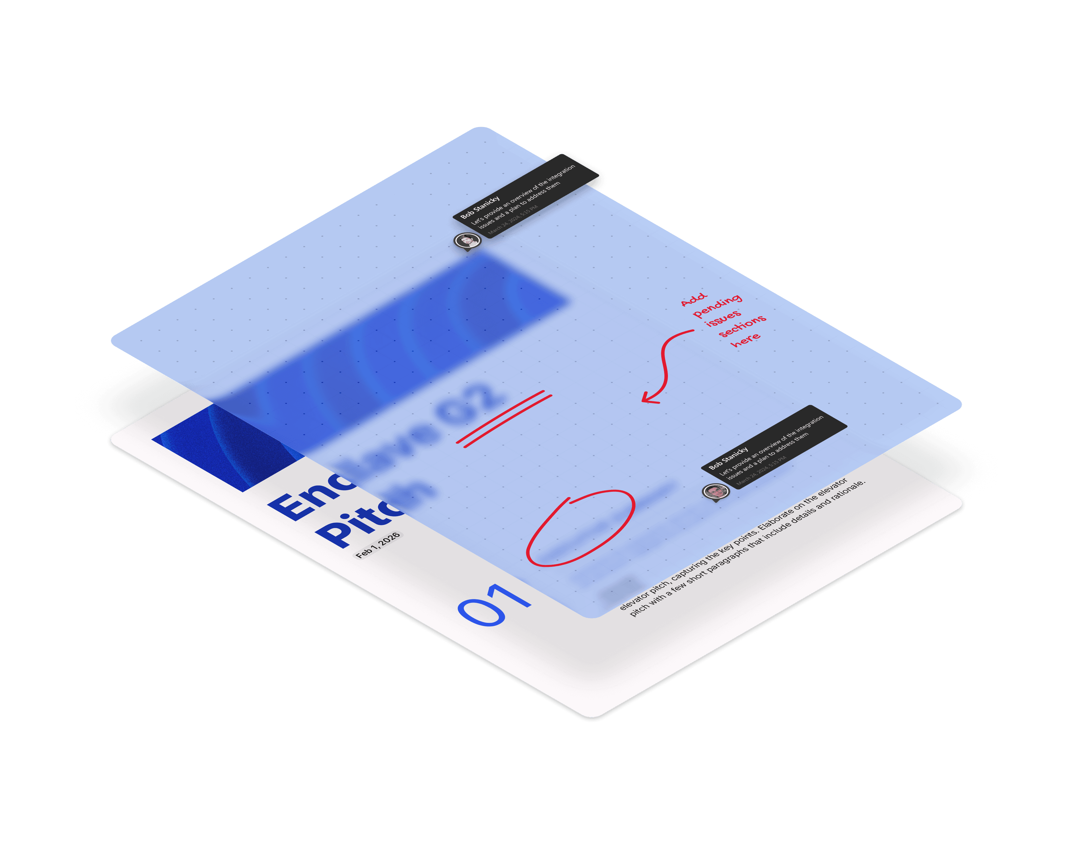 Contextual actions appear right where you’re working - so you can comment, refine, or resolve in seconds.